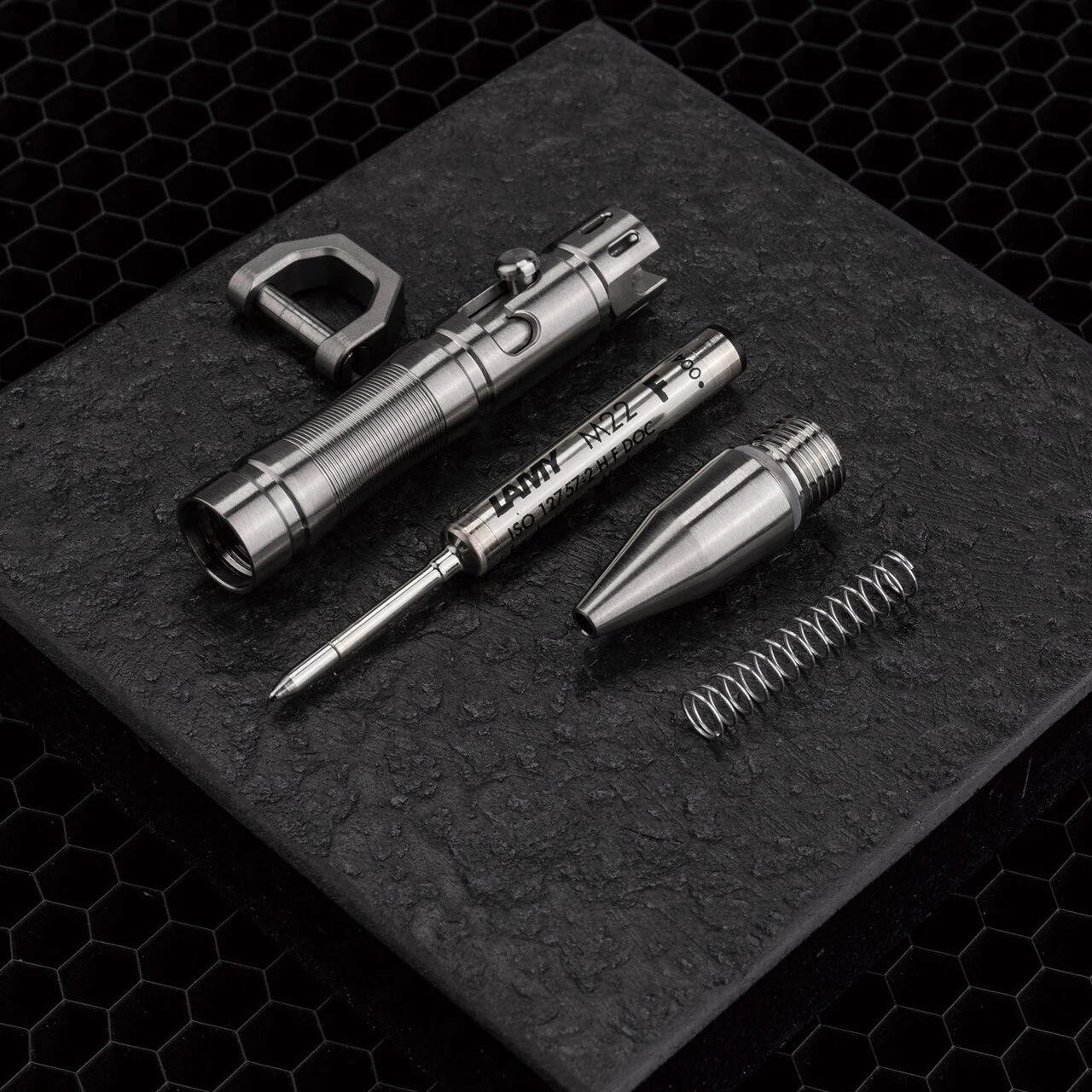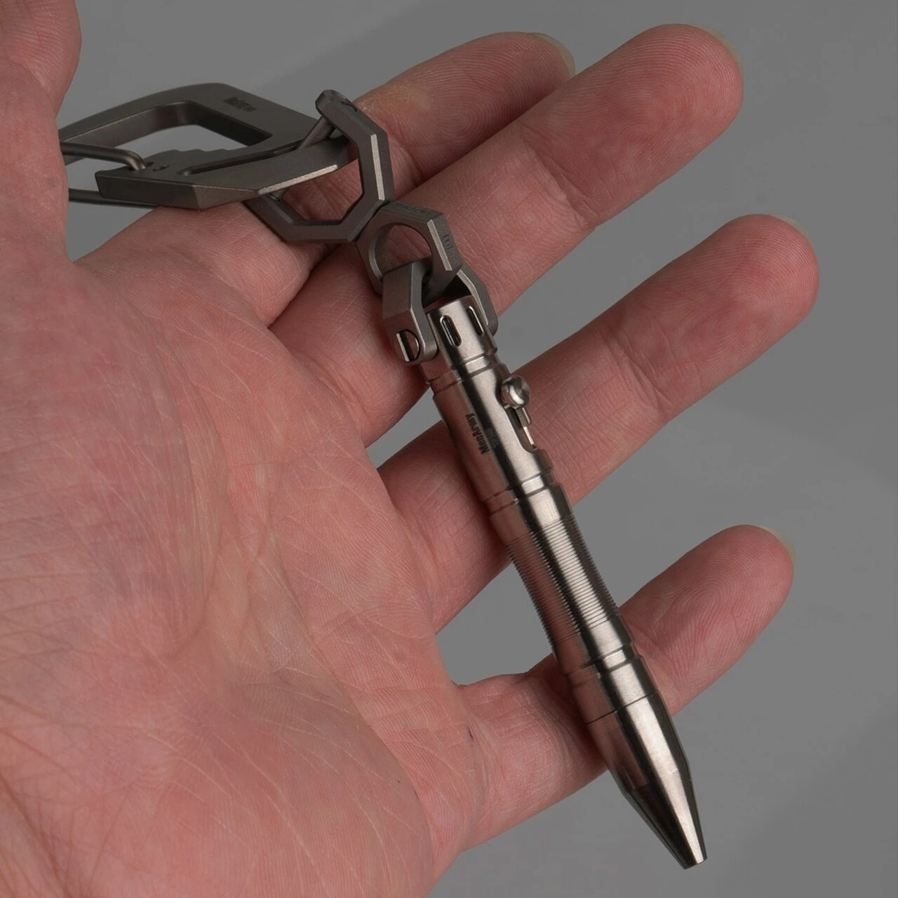 Looking a bit like a cross between a Cyber Man and a sonic screwdriver the Mecarmy TPX8 pen is nothing short of an EDC miracle! Available in either Brass or Titanium it features a removable Mecarmy D-shape key ring that means it will attach to anything or nothing! It is supplied with a Lamy M22 waterproof refill which is engaged via a bolt action making it a joy to use.