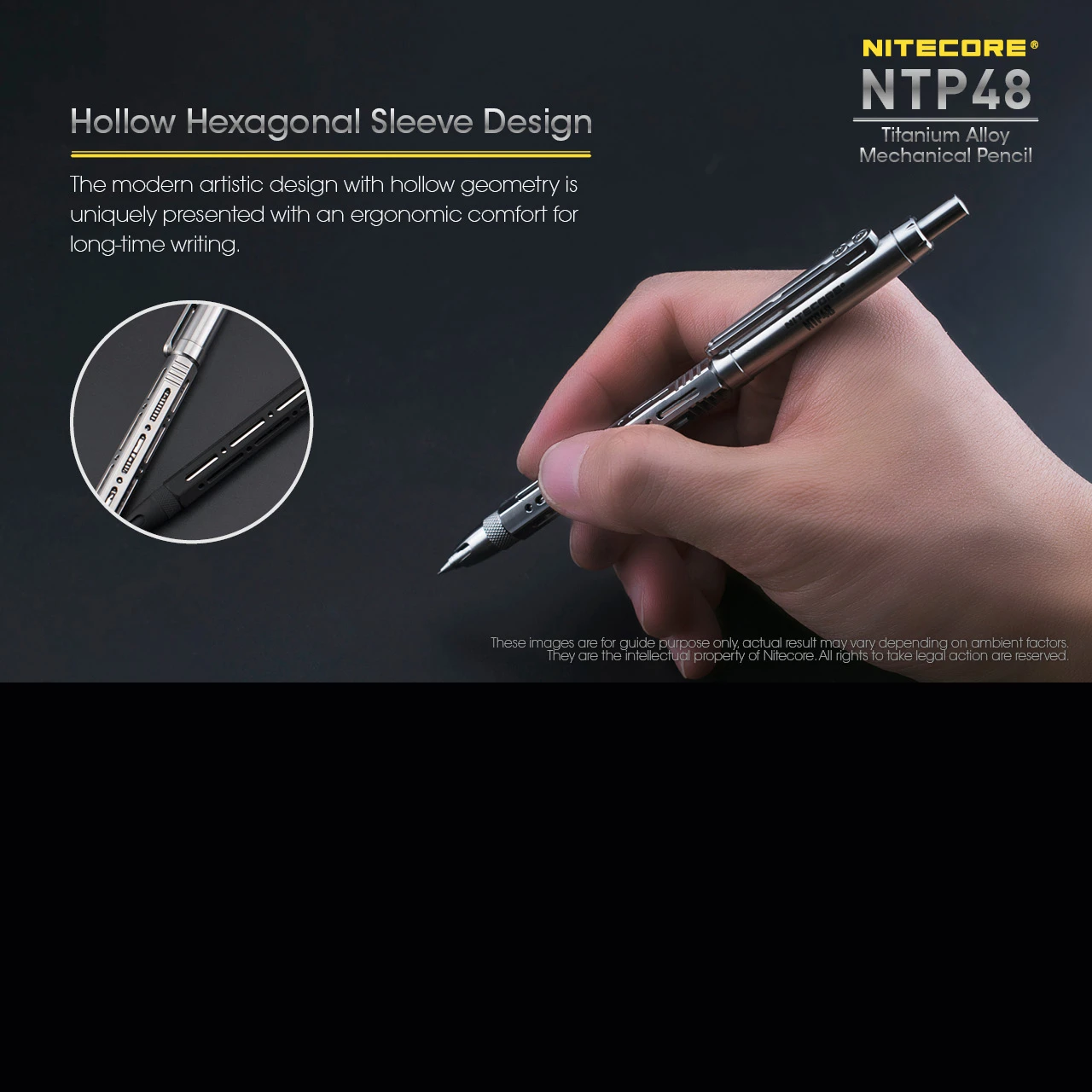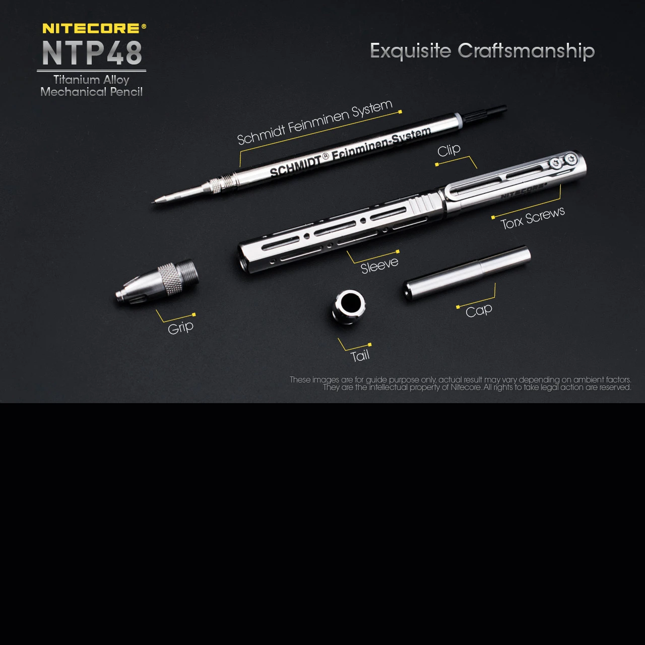 The Nitecore NTP48 mechanical pencil has a titanium alloy, CNC machined body creating a lightweight, impact and corrosion resistant, skin-friendly pencil. Ideal for sketching, writing and drawing.