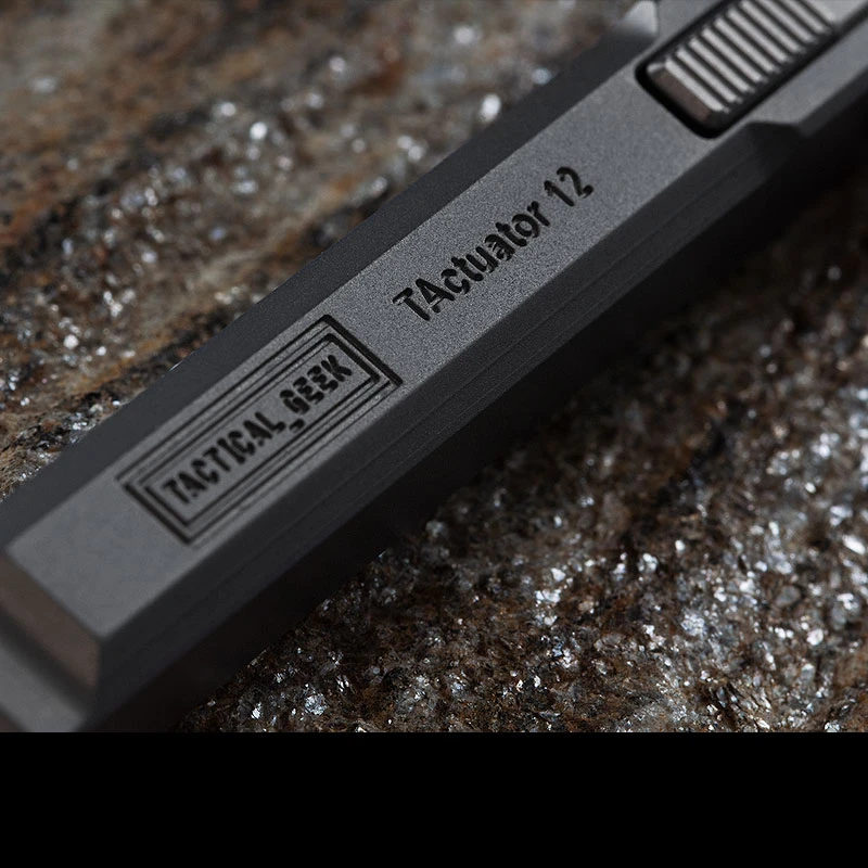 The Tactical Geek TActuator12 Limited Edition Bolt Action Pen is a uniquely styled pen which will perform to the max thanks to the Fisher refill and is also guaranteed to turn heads. The mechanism is a tantalising mix of clever systems you’ll not be able to put down. The side switch flicks the pen point out whilst the hammer shaped design retracts the refill back into its titanium body.Â