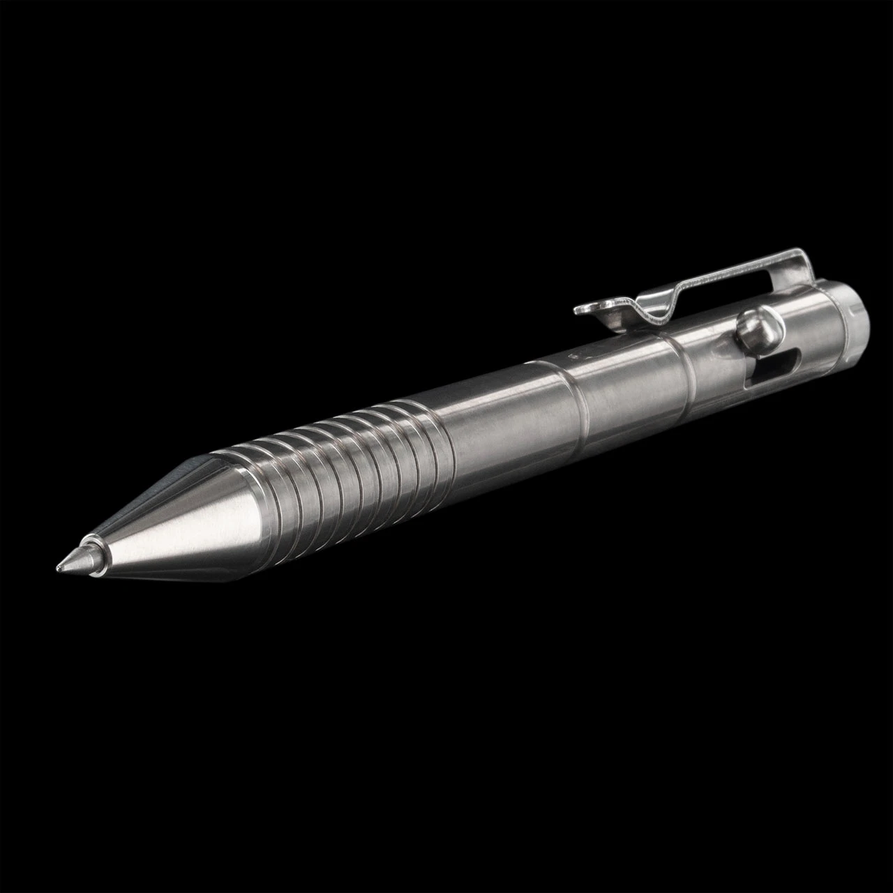 The TiTech T57 is a tactical pen with an “unputdownable” bolt action which engages the rollerball point. There is also a window breaker on the opposite end for those emergency situations.